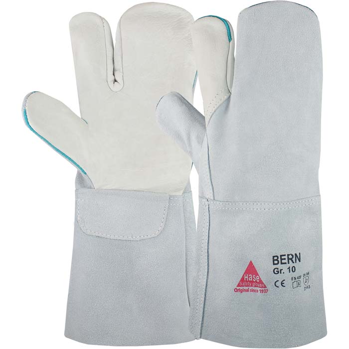 3-Fingerhandschuh aus Qualitätsrindnarben/-spaltleder (1,2 mm).