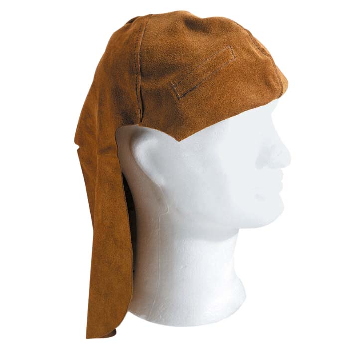 Kopf- und Nackenschutz aus Spaltleder, besonders geeignet für Überkopfschweißungen, Befestigung durch Klettverschluß und passend für alle Kopfbänder.