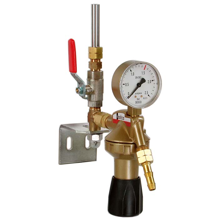Entnahmestellenstation einfach für Argon, kpl. mit Druckminderer, Kugelhahn, Wandkonsole, Löt- bzw. Schweißstutzen 3/8", Überwurfmutter 3/8". Wandwinkel und Kugelhahn werden bauseits montiert.