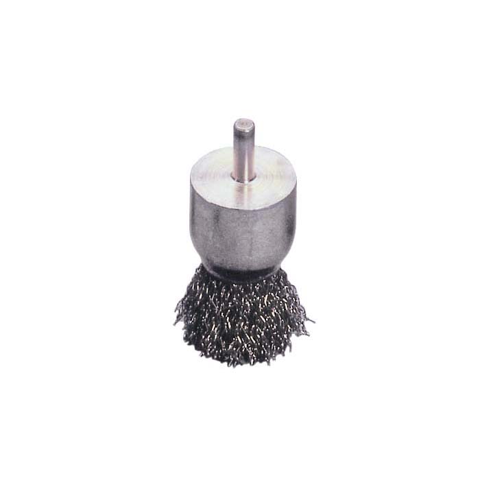 Pinselbürste 23 mm Durchmesser mit 6 mm Schaft, Drahtdicke 0,30 mm, 68 mm lang, max. 18.000 1/min. Edelstahldraht.