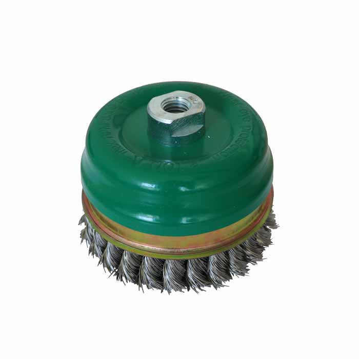 Zopf-Topfbürste 80 mm Durchmesser, Drahtdicke 0,50 mm, mit Gewinde M 14, max. 8.500 1/min. Edelstahldraht.