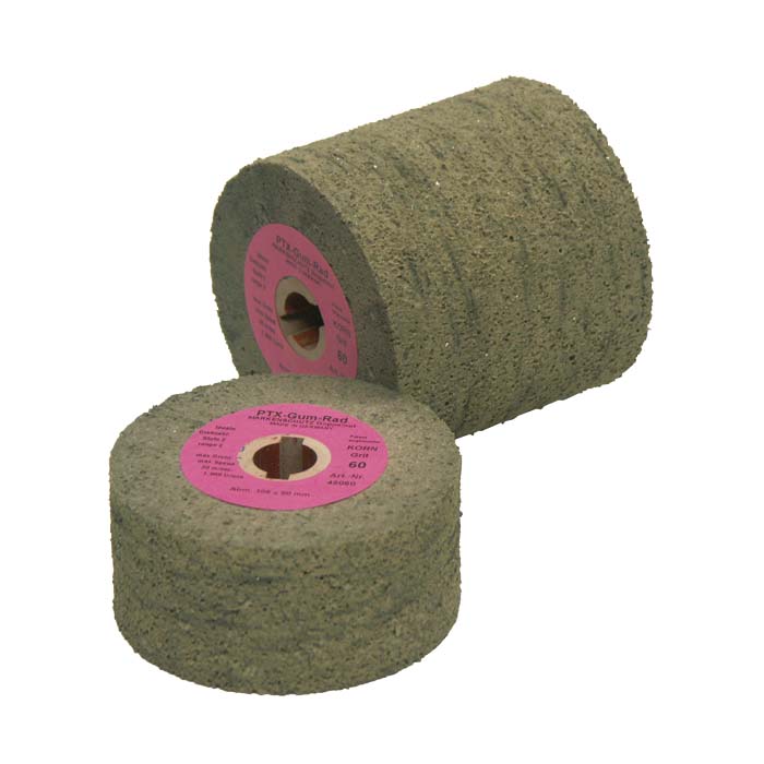 POLY-PTX Gum-Rad. Weicher, korndurchsetzter PUR Gummi mit Siliziumkorn zum Beseitigen von kleinen Kratzern: Ideal für hell glänzenden, kräftig strukturierten, dekorativen Längsschliff auf Edelstahl und Buntmetallen.