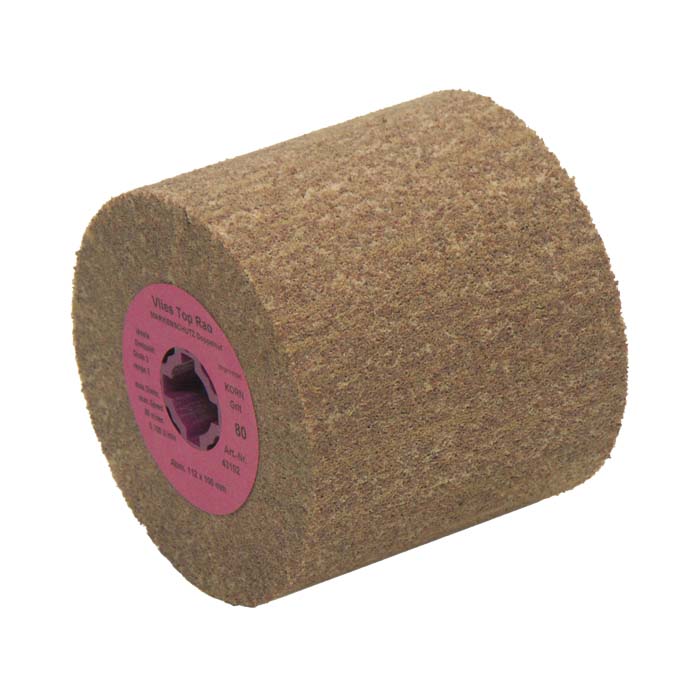 POLY-PTX Vlies-Top-Rad. Mit PUR Schaum verdichtet. Kräftige, dekorativ glänzende Längsstrukturen, Feinentgratung, mehrfache Standzeit gegenüber „Reinvliesräder“.