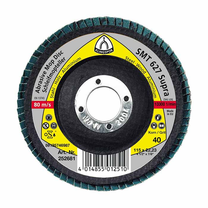 Schleifmopteller SMT 627 Supra. Hervorragendes Produkt für die Kanten- und Schweißnahtbearbeitung von Stahl und NE-Metallen.