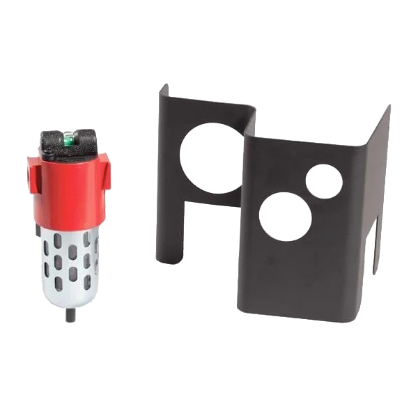 Set aus Luftfilter Kit und Filterabdeckung. Ein installationsbereites Kit mit einem 1-Mikron-Filter und ein automatischer Wasserabscheider, schützt vor kontaminierter Luft. Die Filterabdeckung wurde entwickelt, um den Filter vor Stoßschäden zu schützen. Einsatz für Powermax 65 und Powermax 85 Stromquellen.